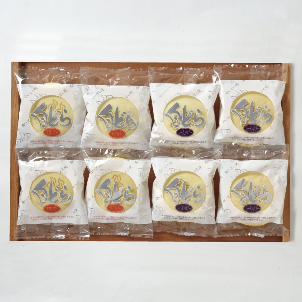白どら(小豆バター、レーズンバター)各4個