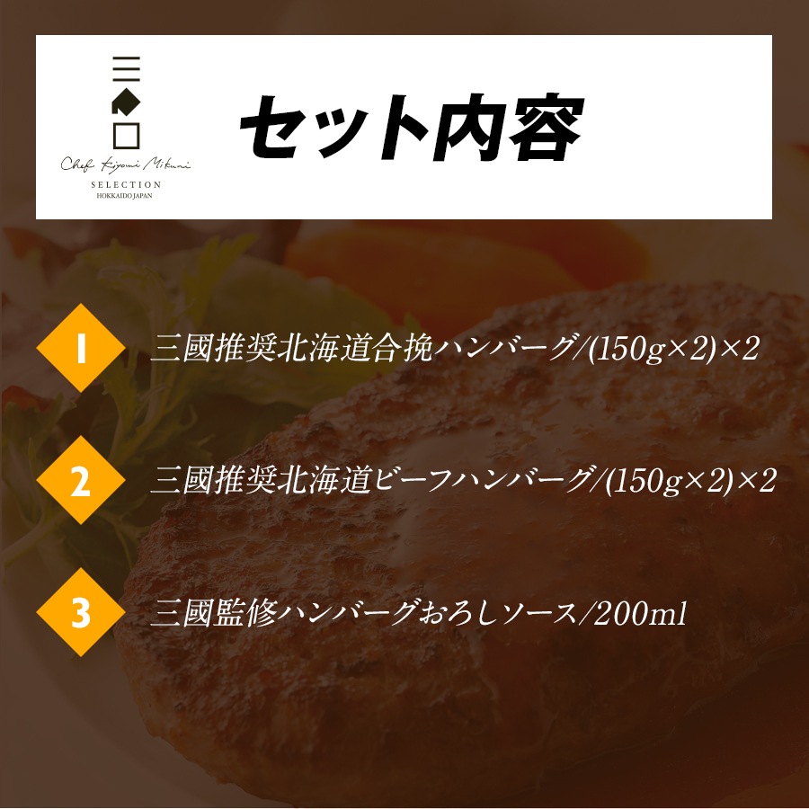 三國推奨 十勝工場発ハンバーグギフト/三國監修 ハンバーグおろしソース付